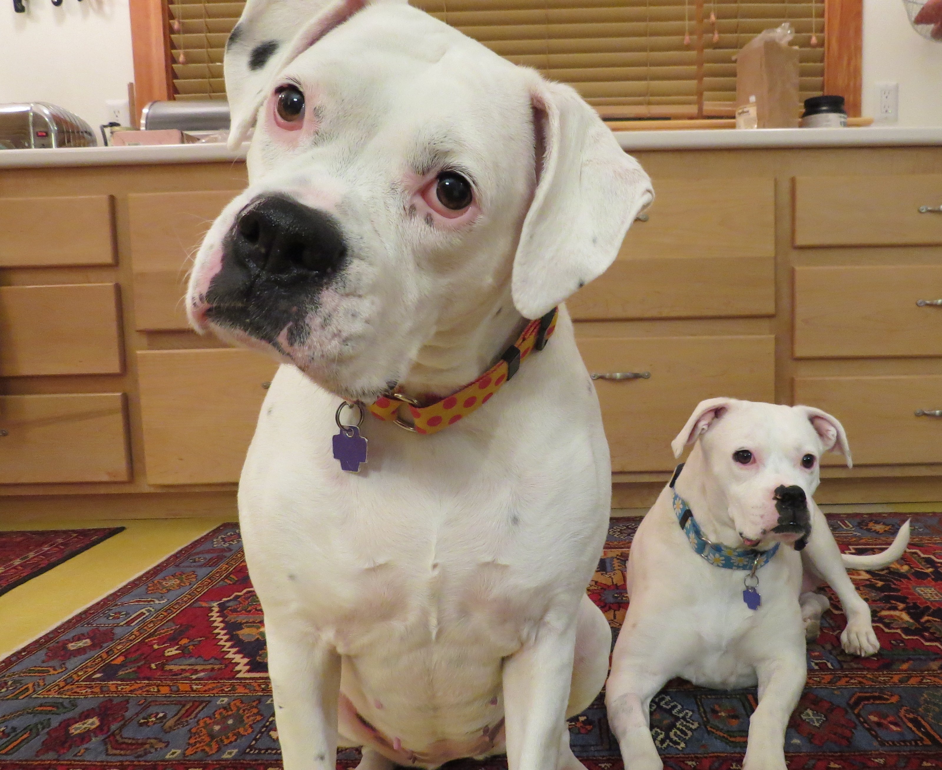 Dean is on the right, looking at his sister Pixie. It’s hard to get pictures of them not moving, because they always are, except when they’re resting and then they’re together.