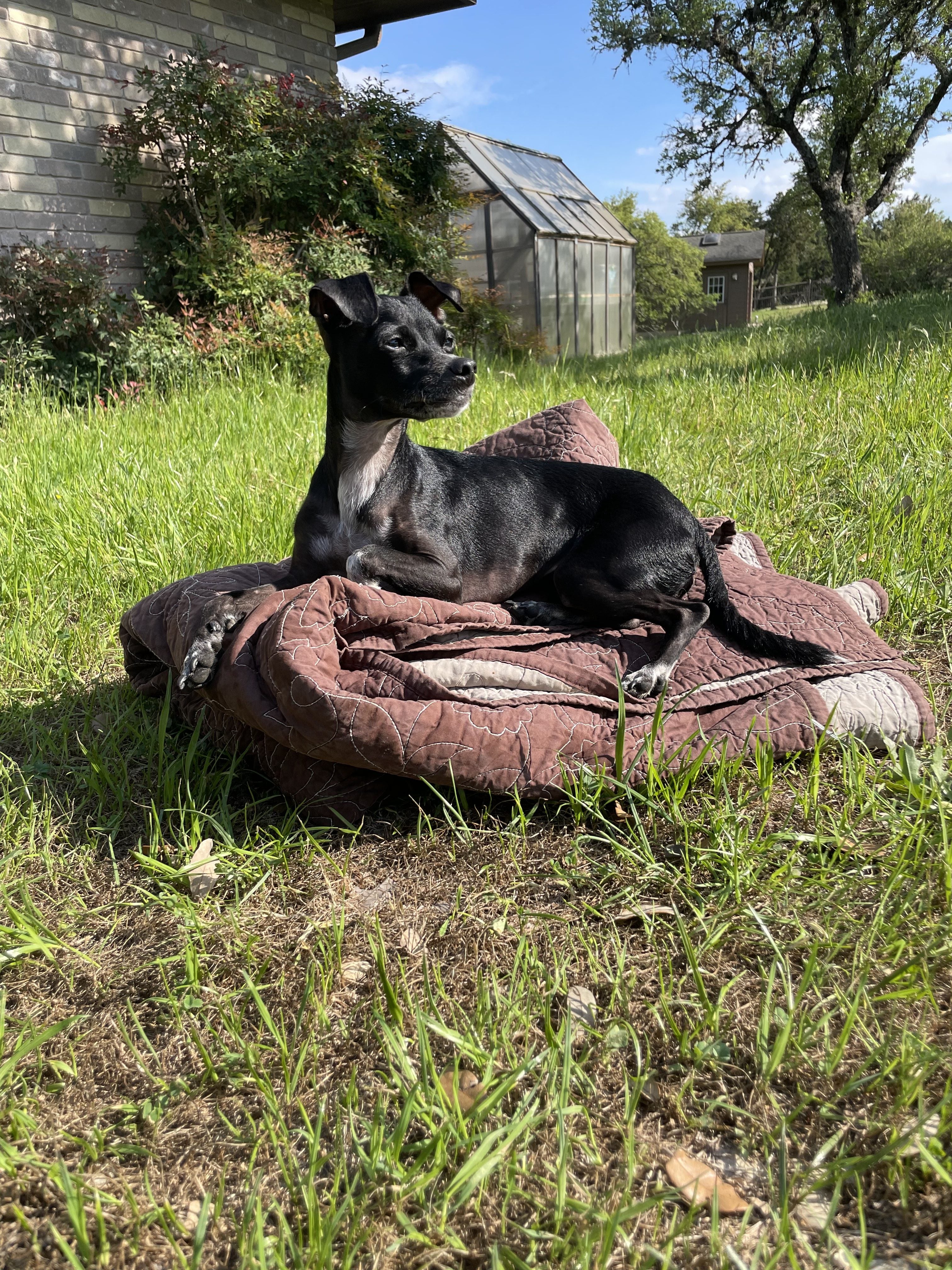 Henry wasn’t stuck with us after all! He has gone to live with a wonderful family where he is so much happier than he could ever have been with the girls and me. He now lives on a lot of beautiful pastoral property with a horse barn, where he romps and roams during the day and sleeps with his new humans at night. His new family, which includes two big dogs and a couple of cats, adores him, and I get to visit him every week. He and Eddy the cat are best friends and spend many happy hours running around the property together. Henry is now like a prince enjoying his kingdom, and my 4 girls enjoy having our cozy little apartment back to “normal!”