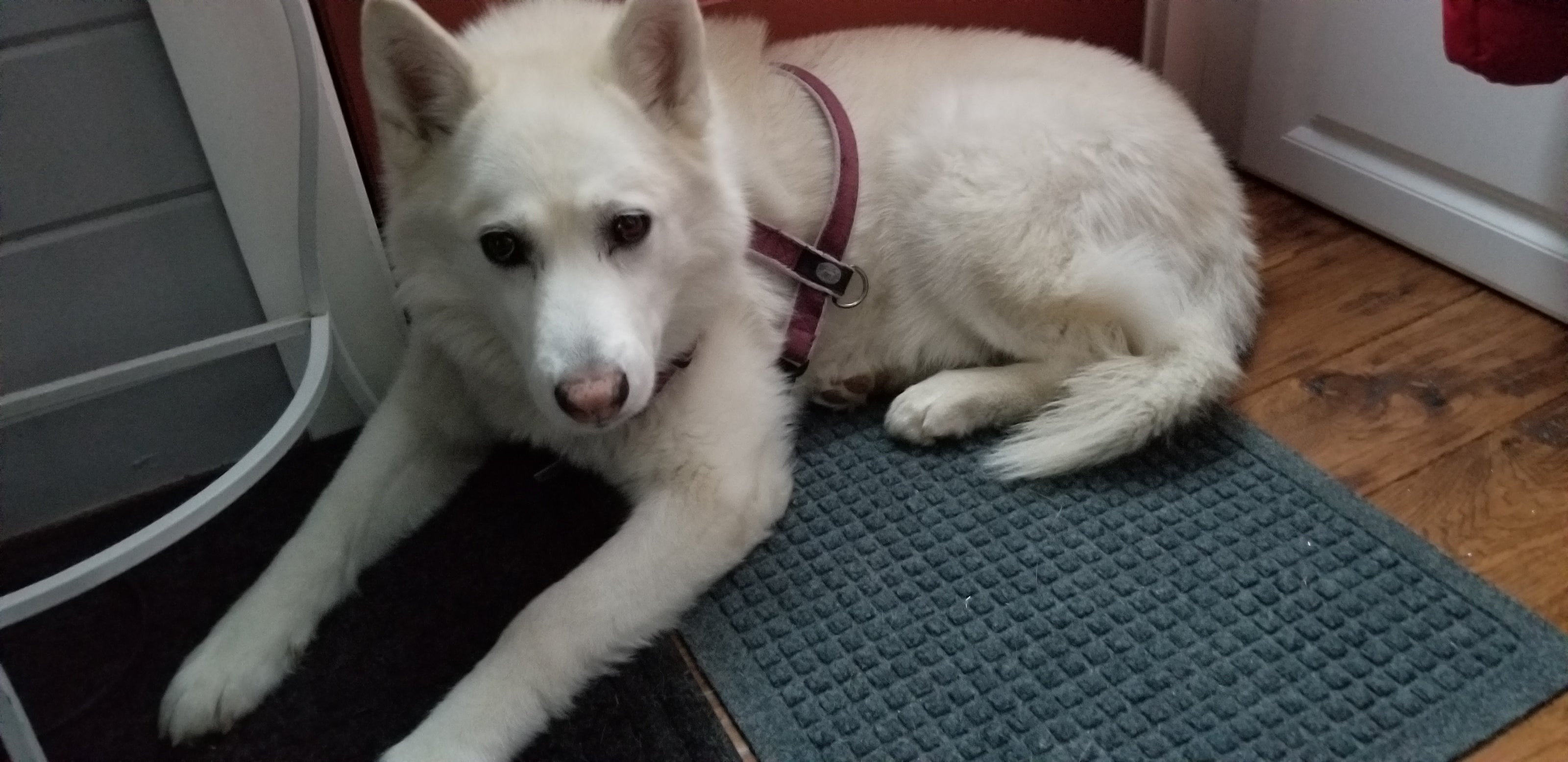 Rosabella is almost a year old now, and she’s quite lanky and sassy. Her coat is amazing - plush, shimmery, and sweet-smelling. She and Coco eat all the same stuff that Grace does, except for papaya and coconut.