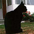 Of the cats who have given me the privilege of their friendship, Melaney was my favorite. We had her for twelve years. No photo we took ever did her justice. She was at least half Siamese and had the proud grace of a princess. The lion is acknowledged king of the animals, and Mel knew she was his tiny domesticated cousin, but his cousin nonetheless. We first noticed the airs when she was a kitten. At the time I was fascinated by the hauteur of this nondescript black kitten. It wasn’t till she was half grown that her pedigree became apparent. That is, to us; Melaney herself always knew she was class! -