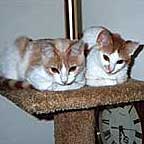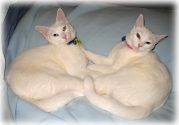 Pumpkin and Wylie are both ten months old, very healthy, and have been vegetarians ever since I got them at ten weeks from the local animal shelter. They really enjoy their food, their favorites being garbanzos, and rice and soy to which we add celery, green pepper, and kohlrabi (all steamed).