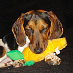 Just wanted to let you know how much I value the work that Compassion Circle has done on behalf of those who would like their animal friends to participate in a meat-free diet. Our dog, The Hamburglar, is eleven, but a very very active eleven. We have always fed him a homemade diet, but recently decided that we would like him to join the rest of the family in becoming a vegetarian.Searching online, I came across http://www.CompassionCircle.com and was impressed by the level of research and information contained there. I purchased some Vegedog and VegeYeast supplements and expected to have to coax The Hamburglar to eat his new meat-free diet. No such problems. Using the lentil recipe in the Vegedog supplement instructions as a starting point, I was very pleasantly surprised to find that he loved his new vegetarian food. Not only is he visibly excited at meal times, it has been six weeks and his arthritis bothers him less. He is noticeably more active (hard to believe!) and doesn't seem as sore when he wakes up in the morning. Thank you for your advocacy of a compassionate diet for dogs and cats.