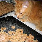 Although Henry is no longer vegan, he was, for 4 1/2 months, an enthusiastic fan of home made Vegecat recipes. He gained about a pound and a half during that time and his coat went from very dandruffy to extra-shiny and dandruff-free. -
