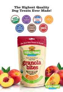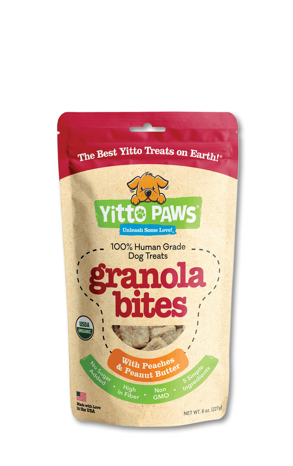 Yitto Paws offers organic dog biscuits that are 100% human-grade, have 6 simple ingredients or less, and contain no added sugar, salt, or additives. That’s why Yitto Paws Granola Bites are literally the Best Way to Treat Your Dog…or other companion animal, too!