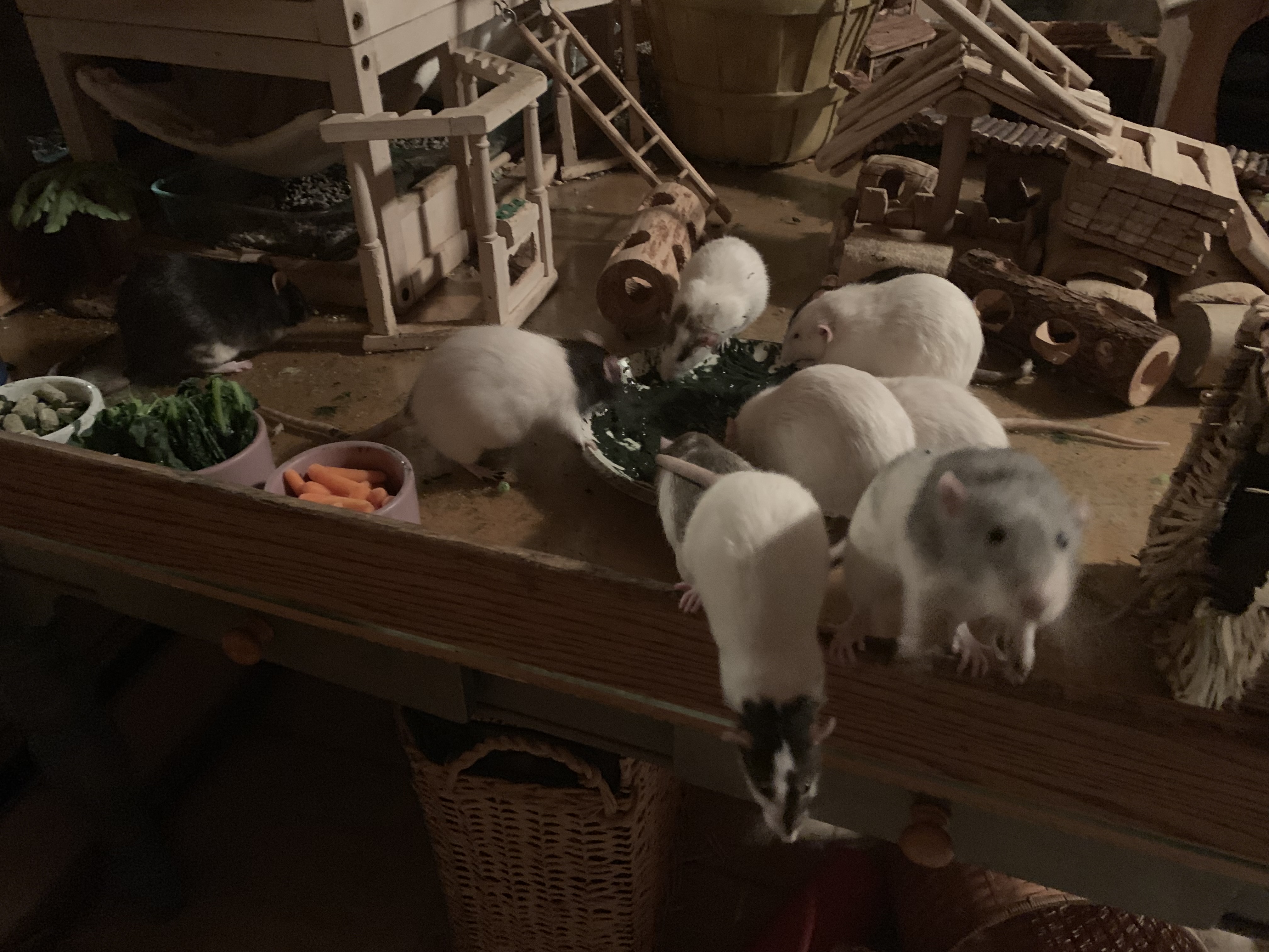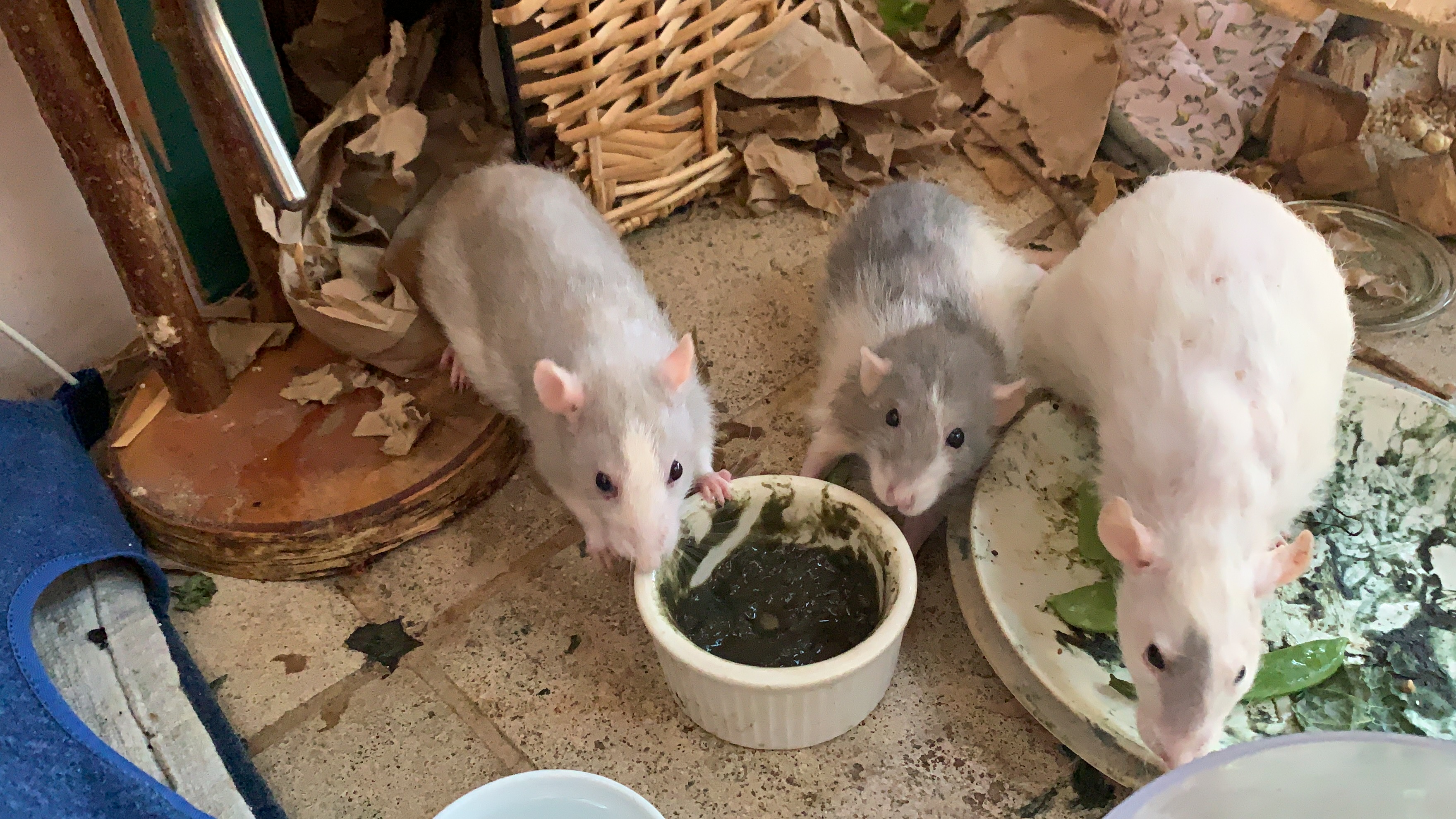 Would you like to know more about our ratties’ vegan diets? Read an interview with Kim Sheridan on the subject by clicking HERE. Please also scroll to the bottom of this page for information about our Rattie Superfood, Green Mush™.
